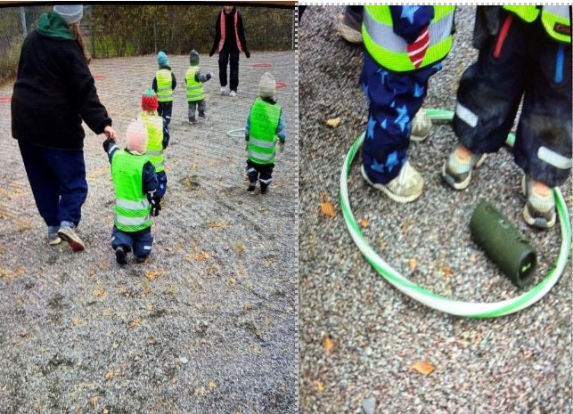 Spring så spelar viPå grusplan framför förskolan formas ett mönster av rockringar och där har våra yngre kompisar på avdelningen samlats för sin version av det 57 år gamla radioprogrammet Ring så spelar vi. Med mindre radio, mindre ringande och mer springande- Spring så spelar vi!