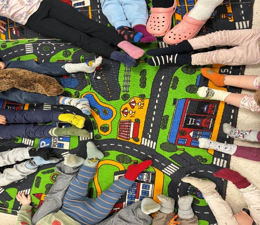 Månadens allsång på förskolan, gick i olikheternas tecken och vi rockade sockorna till sånger som lyfte begreppet olika. Vi sjöng om dagar, kroppsdelar, färger och språk. Vi sjöng om hur vi kan se olika ut och ha olika förmågor. Men framför allt, sjöng vi om värdet i att vara olika och att förstå att uppskatta olikheter likväl som likheter.