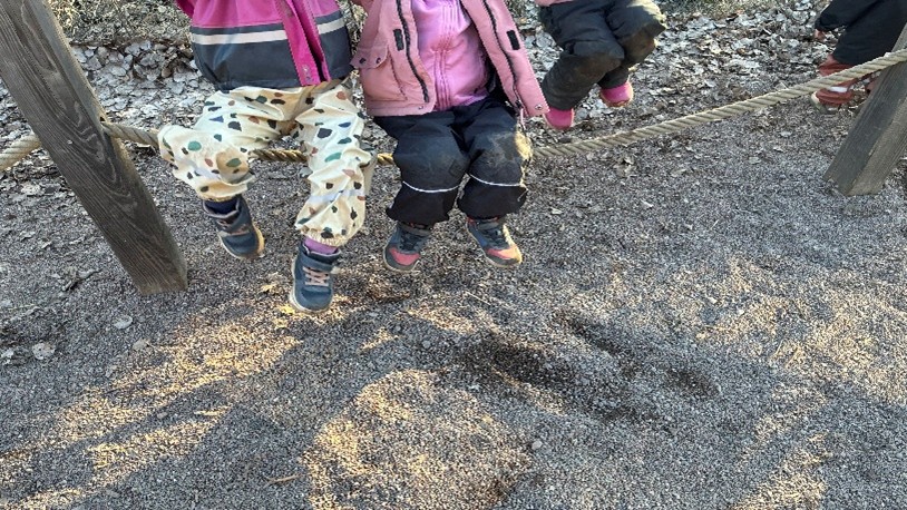 - Men vi kan inte klappa händerna nu, för då ramlar vi ju, konstaterar ett av barnen.